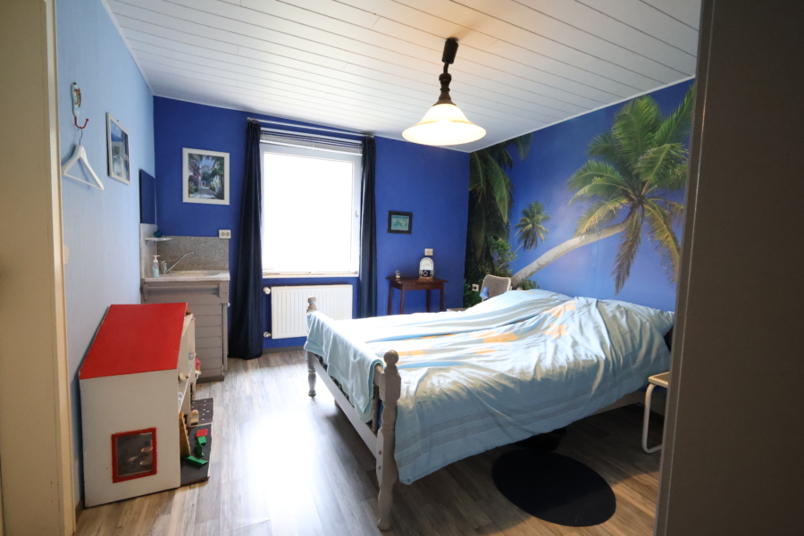 Das im Jahr 1950 erbaute Haus wurde im Jahr 2009 umgebaut und durch einen Anbau erweitert. Es verfügt über eine Wohnfläche von ca. 138 m². Im Erdgeschoss befinden sich insgesamt vier Schlafzimmer, ein offener Koch-/Essbereich inkl. Landhausküche mit Kücheninsel, Kaminofen und direktem Zugang zur Terrasse und dem Garten, ein Wohnzimmer mit Kaminofen, ein Tageslichtbad ausgestattet mit Badewanne, Dusche und Doppelwaschtisch und WC, ein separates Gäste- WC und ein Hauswirtschaftsraum mit direktem Zugang zum Garten. Über eine Holztreppe gelangt man ins Dachgeschoss. Hier befindet sich ein weiteres Schlafzimmer und der Dachboden.