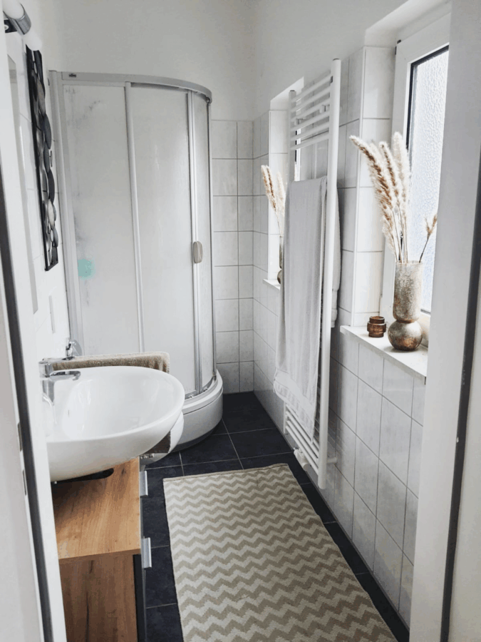 Das Objekt ist mit Vinylböden ausgelegt, die Bäder sind verfliest. Alle Wände und Decken sind weiß gestrichen. Eine Einbauküche wird nicht mitvermietet.